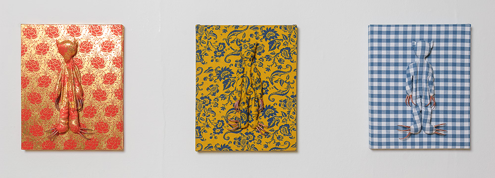 Camouflage: India, Sweden, Spain India, Spain, Sweden 2012-13 Copper & fabric Each 51 x 41 x 9 cms Photo: Nick Dunmur
