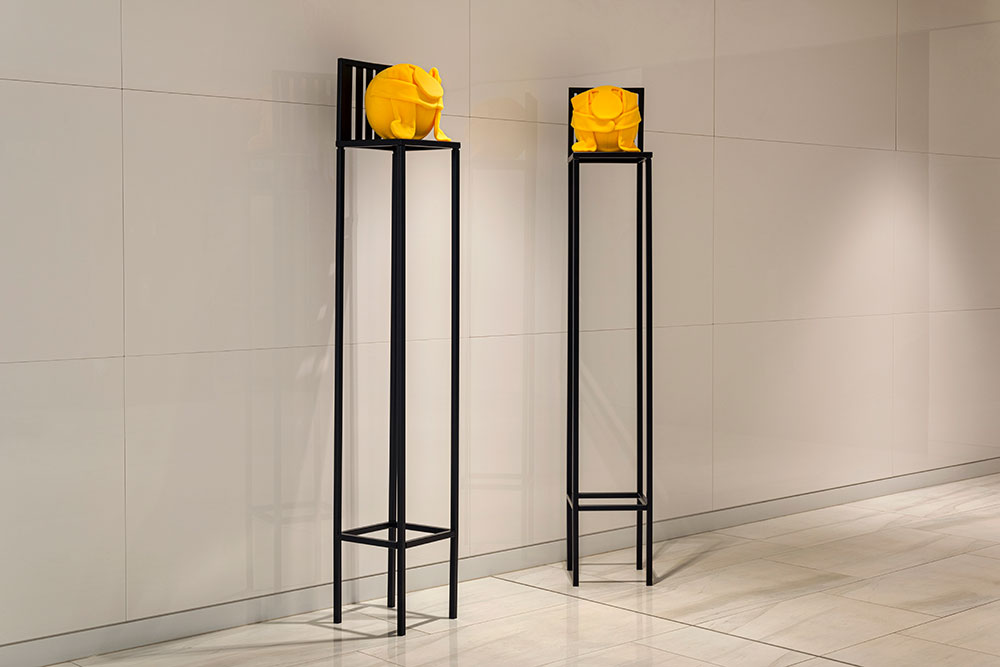 Home: Tall Chairs Tall Chairs 1996Steel, fabric & stuffingEach chair 235 x 35 x 35 cms Photo: Thierry Bal