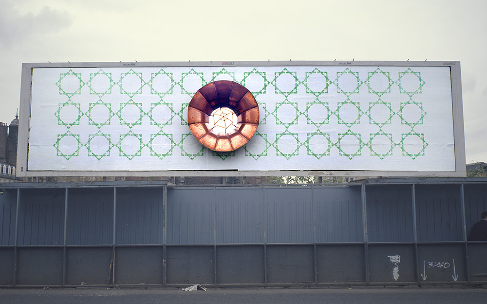 The BBC Billboard Art Project was a commission by the B.B.C. to make art on billboards. Damien Hirst, Howard Hodgkin, Helen Chadwick, Richard Long, Ingrid Pollard and many other established artists produced work for over 270 billboards across the UK. Kaur was the only artist in the project to add a third dimension by attaching sculptures, large speakers made out of copper onto them.