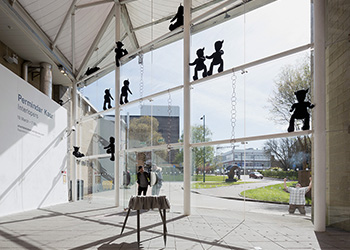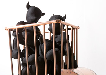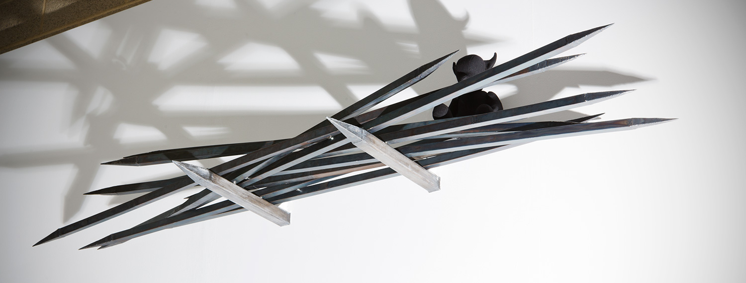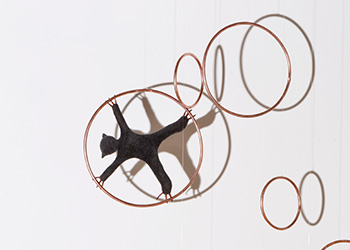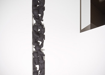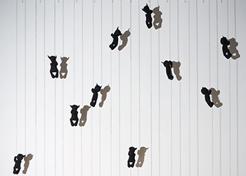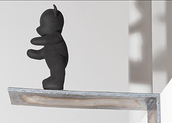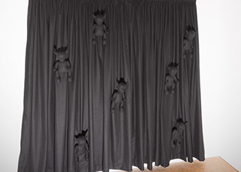 This body of work was developed during a residency at the University of Hertfordshire, Hatfield. Black faceless teddies have taken over the gallery space marking out their territory or trying to escape.