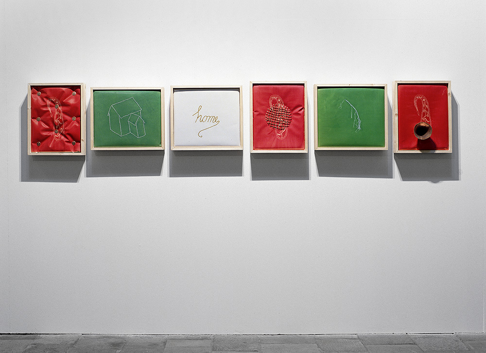 La Capella: Cushions Cushions 1993Photographs of embroideries & copper Each approx 51 x 47 cms or 47 x 51 cms Photo: Peter Lundh
