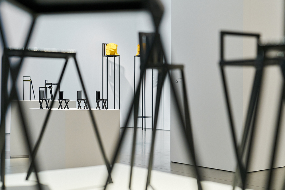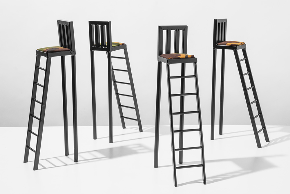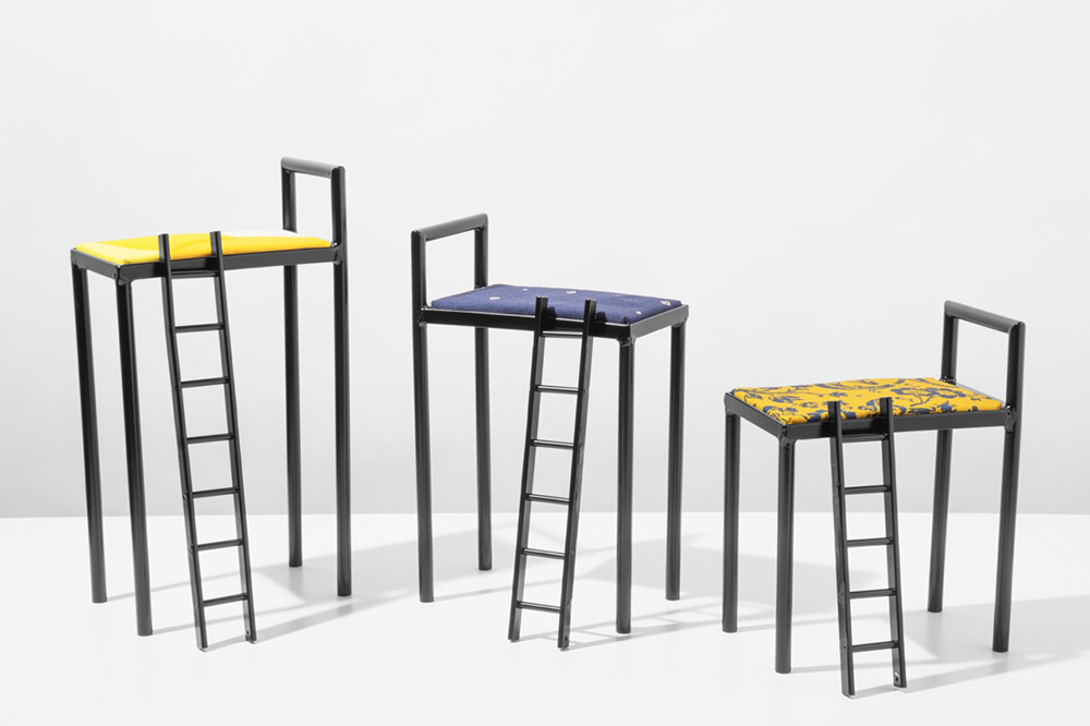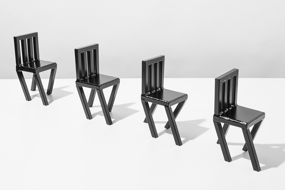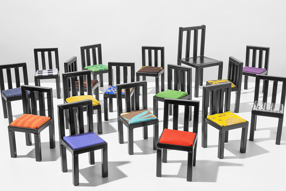 Kaur presents the Room of Rooms, a collection of miniaturised furniture that populates the floor space. Reflecting on her long-term interest in the idea of home, her curation presents everyday objects such as beds and chairs in uncomfortable domestic contexts.