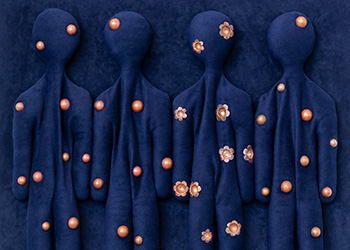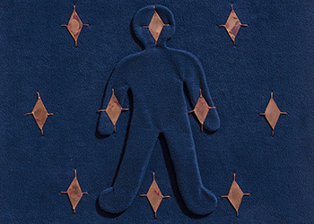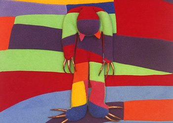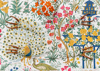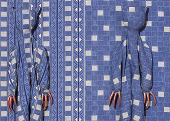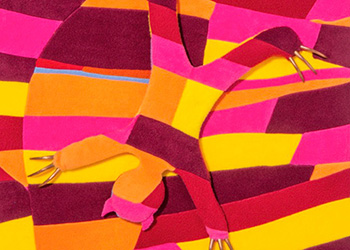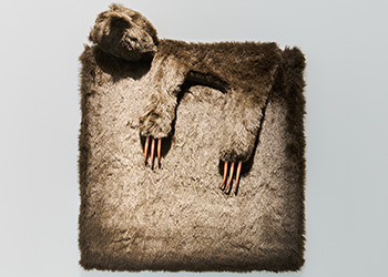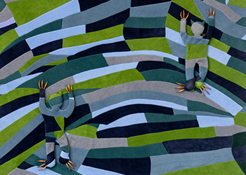 These camouflaged works were shown in Nothing is Fixed. Using a salon suggestive of a manor house, the work references positions of power and hierarchy. There are sloths, birds and ambiguous figures. The camouflage acts as a means of defence, an adaption in order to fit in.