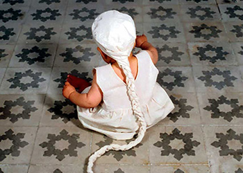 Various hats were made for Simran, one with a plait, one with two, one with ponytails and yet another one with an extremely long plait. In each image she represents a different character and identity. Each image represents future possibilities. Collaborative work with Peter Lundh