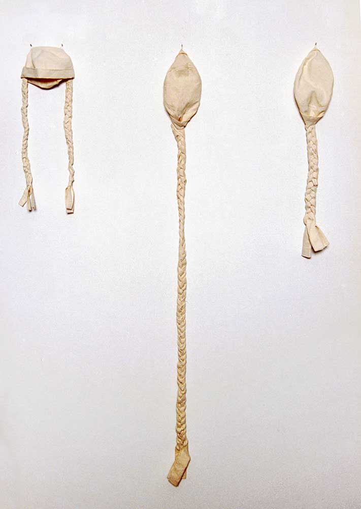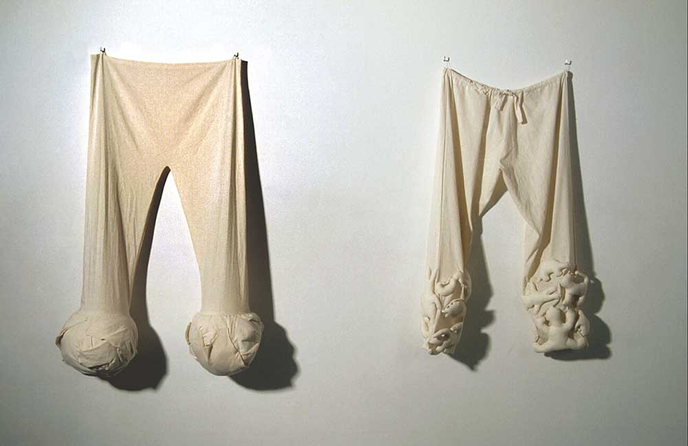 Simran’s Clothes: Clothing Clothing 2000CottonTrousers (left) – 104 x 65 x 23cmsTrousers (right) – 92 x 66 x 15cmsPlaits – 100 x 138 cms Photo: Peter Lundh