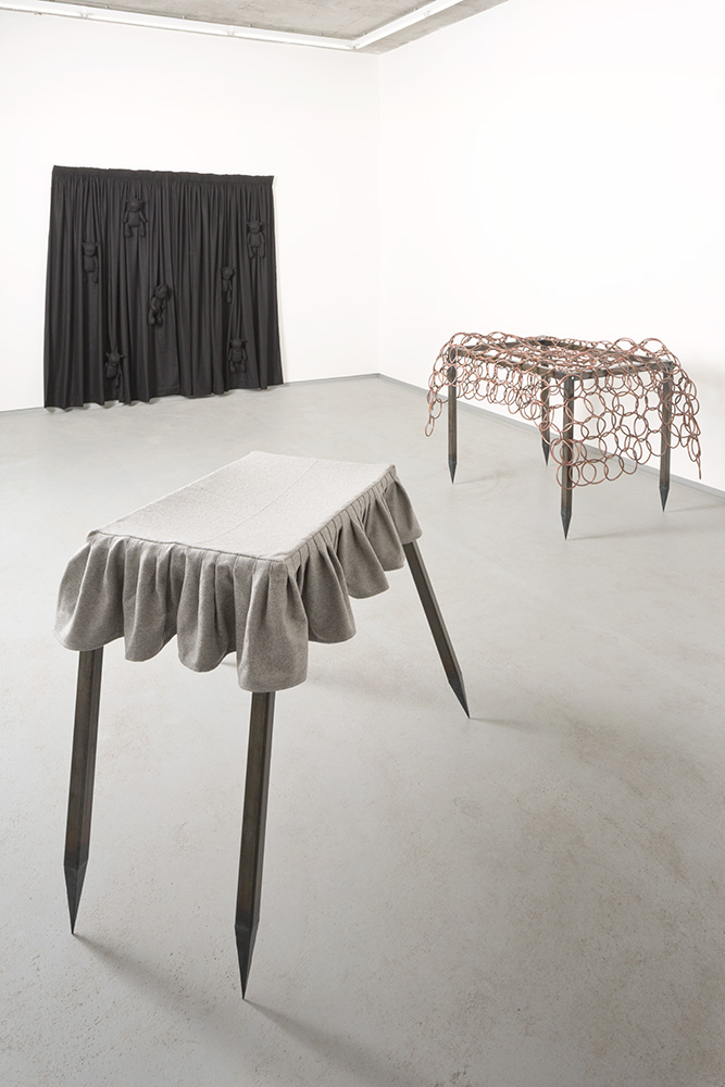 You are absolutely entitled to send them, or me, back to the work! Can you describe your studio: what regular materials you have access to? In ‘We Are All Animals’, apart from the delicate scale, the way the copper elements emerge from the fabric is very subtle. You are protecting the mystery of the join between the two materials.